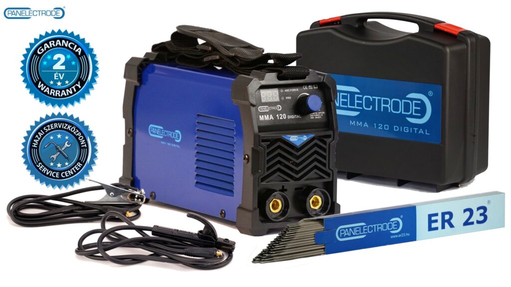Rövid leírás: A Panelectrode MMA 120 Digital VRD az egyik legmegbízhatóbb, legkisebb hordozható inverteres hegesztőgép a piacon, melyet kifejezetten a ”háztáji” hegesztők igényeire fejlesztettek ki. Az IGBT technológiával működő MMA 120 Digital VRD hegesztőgép stabil és magas minőségű hegesztést biztosít olyan bevonatos elektródákkal, mint az ER23 Panelectrode (melynek 1,6mm-es kiszerelését most AJÁNDÉKBA adjuk minden ilyen típusú hegesztőgépünk mellé). A hegesztőgépre 2 év garanciát vállal a hazai szervizközpontunk.