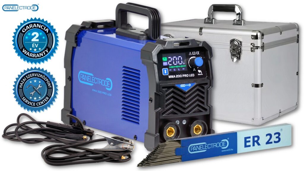 Rövid leírás: A Panelectrode MMA 200 PRO LED a Panelectrode MMA invertereinek új korszakát hozza el. A LED kijelző és kiemelkedően felhasználóbarát szoftver teszi ezt a gépet az egyik legmegbízhatóbb, hordozható inverteres hegesztőgéppé a piacon, melyet kifejezetten a könnyűipari hegesztők igényeire fejlesztettek ki. Az IGBT technológiával működő Panelectrode MMA sorozat stabil és magas minőségű hegesztést biztosít olyan bevonatos elektródákkal, mint az ER23 Panelectrode (melynek 1kg-os kiszerelését most AJÁNDÉKBA adjuk minden MMA hegesztőgépünk mellé). Az MMA 200 PRO LED-et kifejezetten ajánljuk bázikus elektródák hegesztésére is! A hegesztőgépre 2 év garanciát vállal a hazai szervizközpontunk.